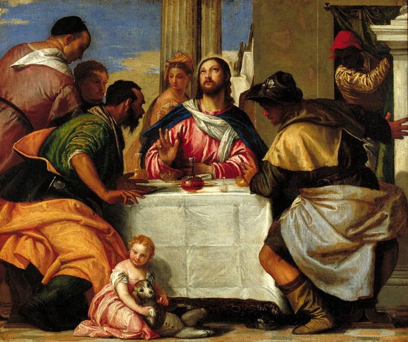 Das Gemälde "Supper at Emmaus" von Paolo Veronese als hochwertige, handgemalte Ölgemälde-Replikation.