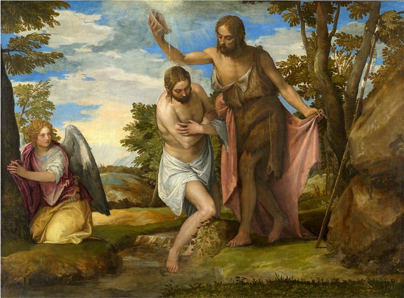 Das Gemälde "The Baptism of Christ" von Paolo Veronese als hochwertige, handgemalte Ölgemälde-Replikation.