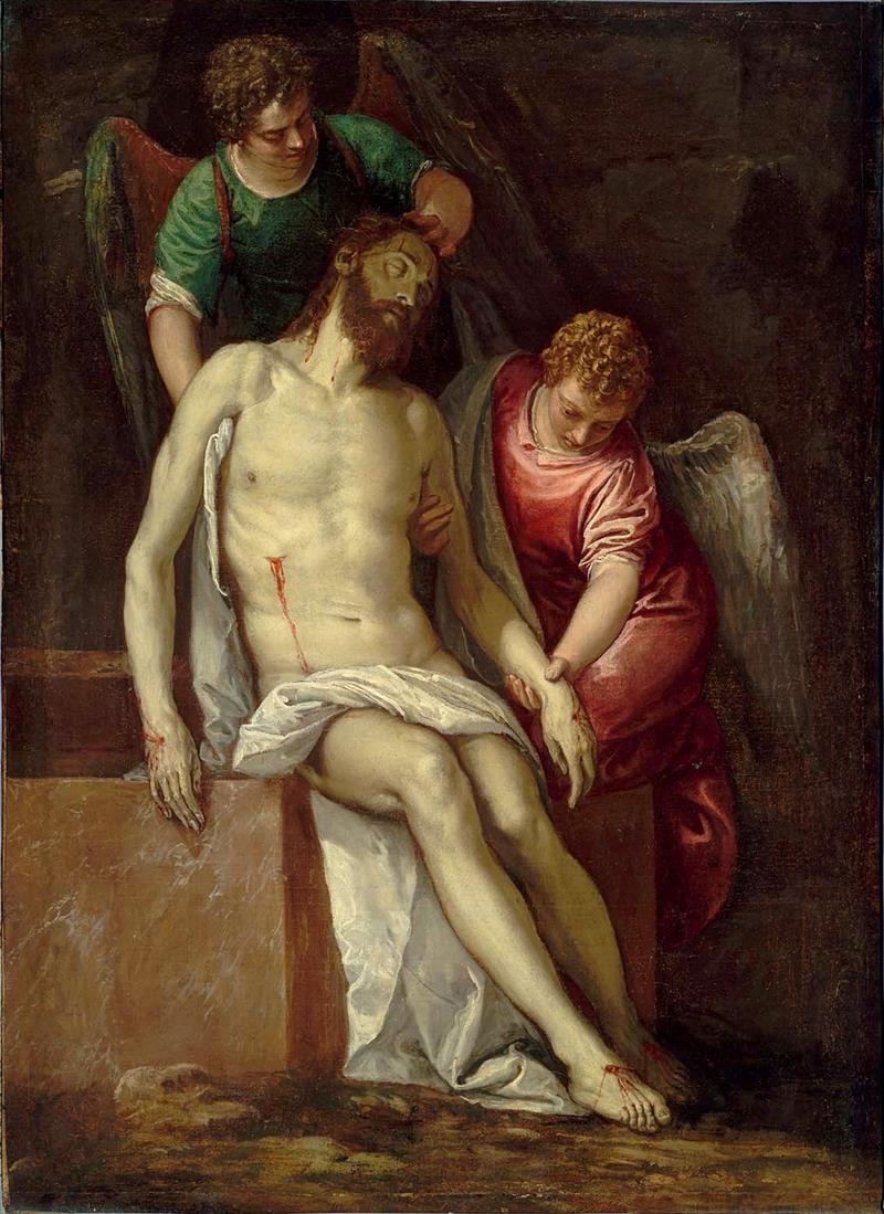 Das Gemälde "The Dead Christ Supported by Angels" von Paolo Veronese als hochwertige, handgemalte Ölgemälde-Replikation.