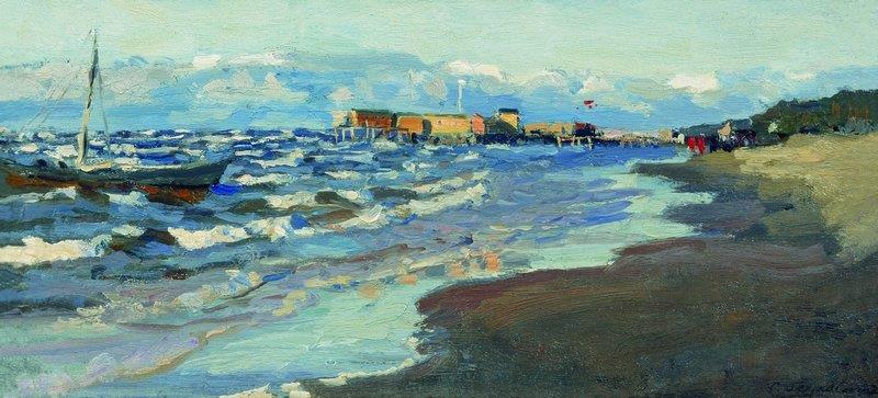 Das Gemälde "The Seashore" von Stanislaw Julianowitsch Zukowski als hochwertige, handgemalte Ölgemälde-Replikation.