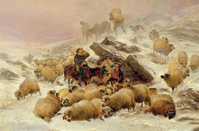 Das Gemälde "The Warmth of a Wee Dram" von Thomas Sidney Cooper als hochwertige, handgemalte Ölgemälde-Replikation.