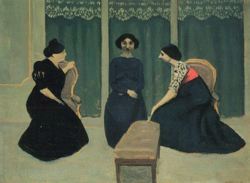 Das Gemälde "Tratsch" von Felix Valletton als hochwertige, handgemalte Ölgemälde-Replikation.