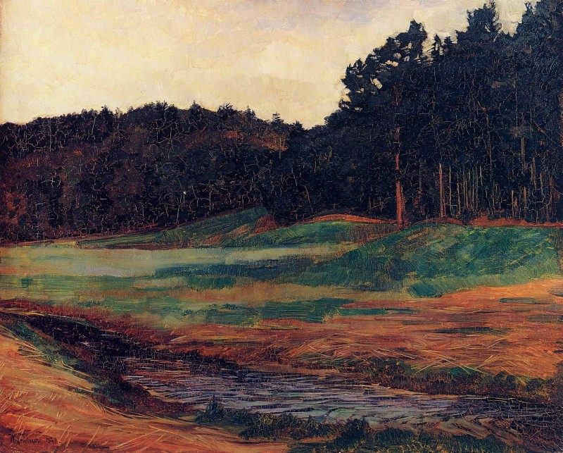 Das Gemälde "Waldrand bei Obing" von Heinrich Wilhelm Trübner als hochwertige, handgemalte Ölgemälde-Replikation.
