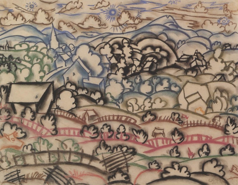 Das Gemälde "Weite Landschaft mit Gestirnen" von Walter Ophey als hochwertige, handgemalte Ölgemälde-Replikation.
