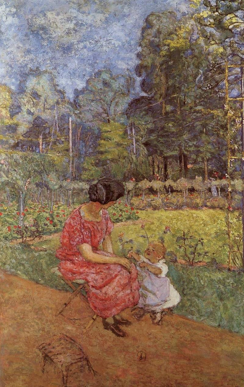 Das Gemälde "Woman and Child in a Garden" von Edouard Vuillard als hochwertige, handgemalte Ölgemälde-Replikation.
