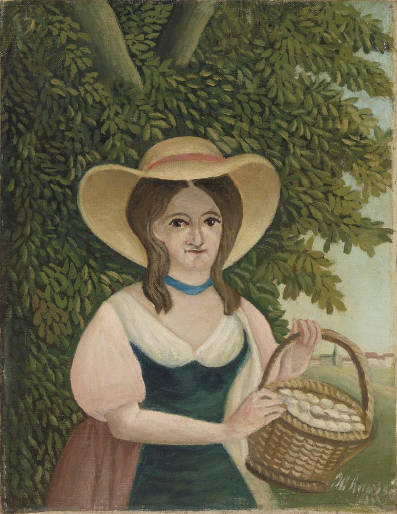 Das Gemälde "Woman with Basket of Eggs" von Henri Rousseau als hochwertige, handgemalte Ölgemälde-Replikation.