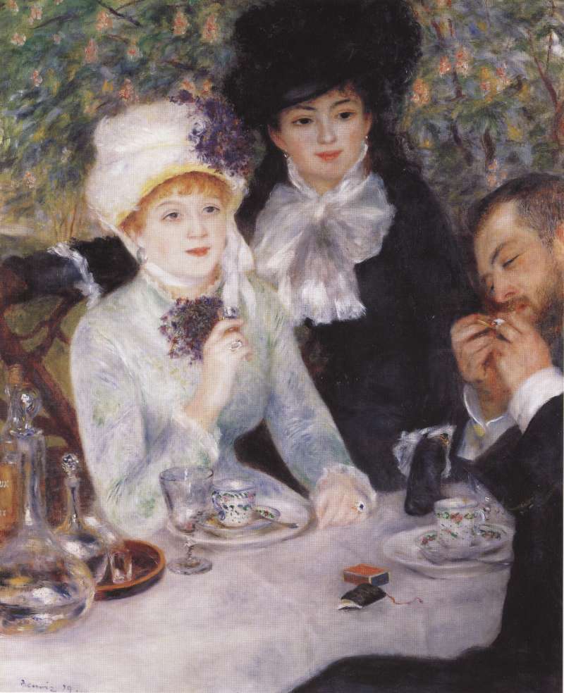 The painting "After Lunch" from the artist Pierre Auguste Renoir as high-quality, hand-painted oil painting replication.