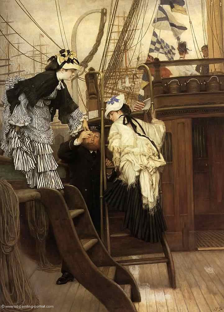 The painting "Boarding the Yacht" from the artist James Jacques Joseph Tissot as high-quality, hand-painted oil painting replication.