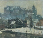 The painting "Colditz im Schnee" from the artist Eugen Bracht as high-quality, hand-painted oil painting replication.
