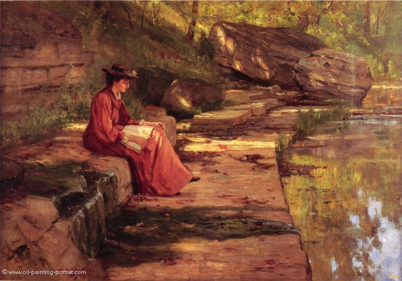 The painting "Daisy by the River" from the artist Theodore Clement Steele as high-quality, hand-painted oil painting replication.