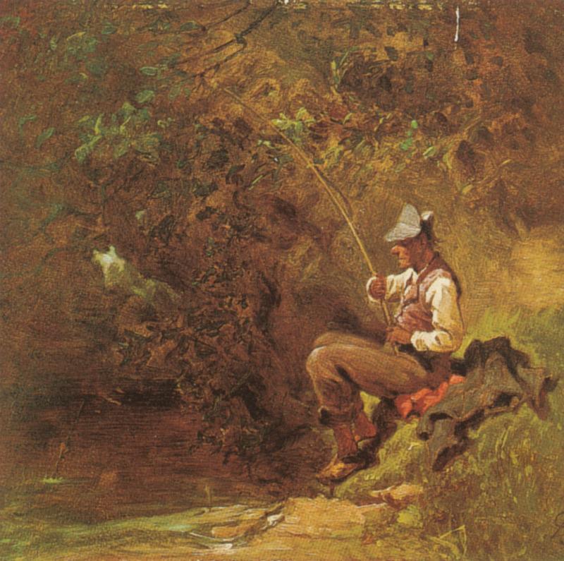 The painting "Der Angler" from the artist Carl Spitzweg as high-quality, hand-painted oil painting replication.
