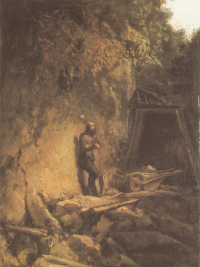 The painting "Der Bergmann" from the artist Carl Spitzweg as high-quality, hand-painted oil painting replication.
