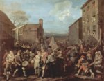 The painting "Der Marsch nach Finchley" from the artist William Hogarth as high-quality, hand-painted oil painting replication.