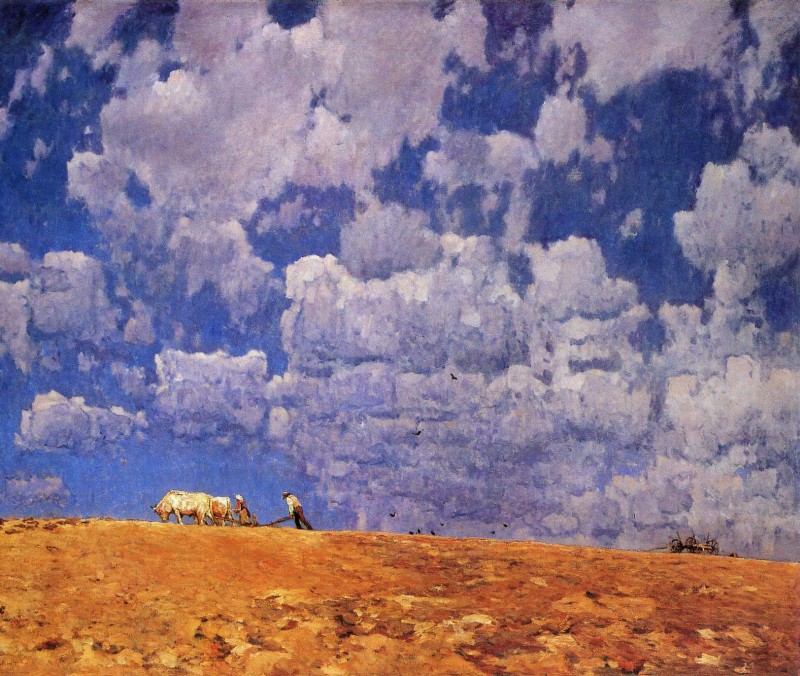 The painting "Der Pflueger" from the artist Eugen Bracht as high-quality, hand-painted oil painting replication.