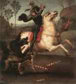 The painting "Der heilige Georg im Kampf mit dem Drachen" from the artist Raffael as high-quality, hand-painted oil painting replication.