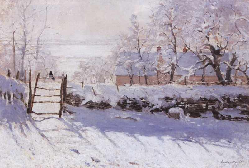 The painting "Die Elster" from the artist Claude Monet as high-quality, hand-painted oil painting replication.