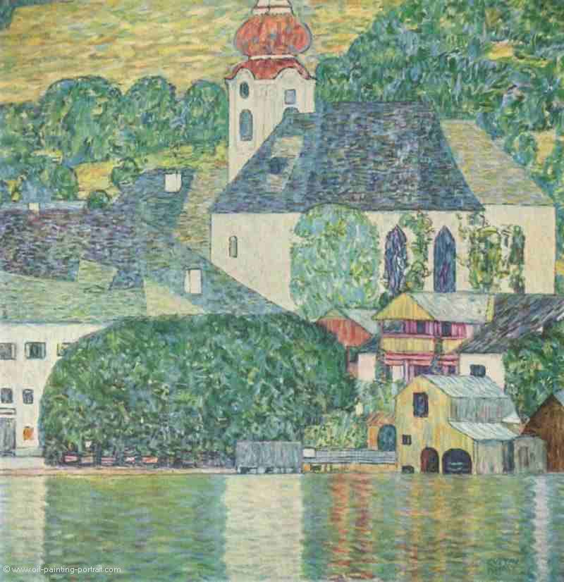 The painting "Die St. Wolfgang Kirche" from the artist Gustav Klimt as high-quality, hand-painted oil painting replication.