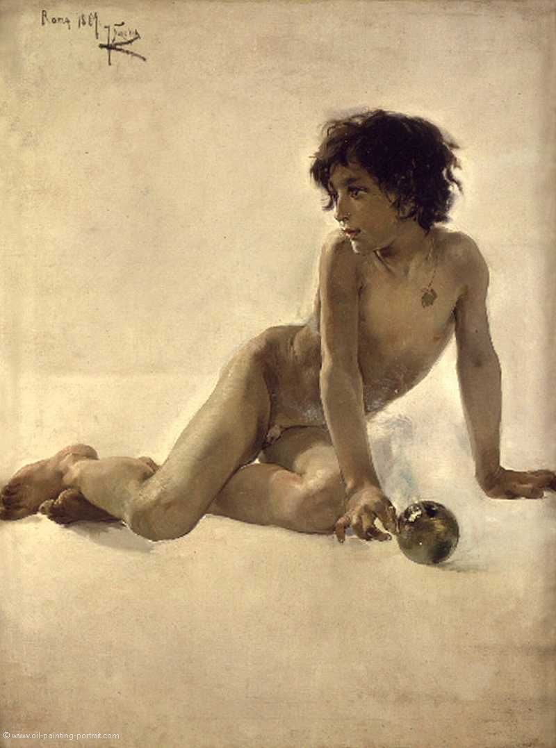 The painting "El Nino de la Bola" from the artist Joaquin Sorolla y Bastida as high-quality, hand-painted oil painting replication.