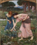 The painting "Gather ye Rosebuds while ye may" from the artist John William Waterhouse as high-quality, hand-painted oil painting replication.