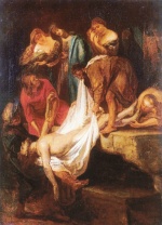 The painting "Grablegung Christi" from the artist Carl Spitzweg as high-quality, hand-painted oil painting replication.