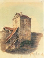 The painting "Hinkelsturm mit Stadtmauer" from the artist Eugen Bracht as high-quality, hand-painted oil painting replication.