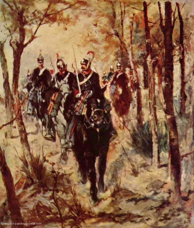 The painting "Kavalleristen" from the artist Giovanni Fattori as high-quality, hand-painted oil painting replication.