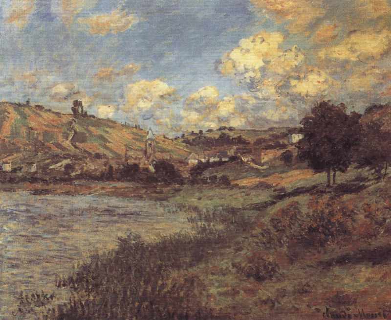 The painting "Landschaft bei Vetheuil" from the artist Claude Monet as high-quality, hand-painted oil painting replication.