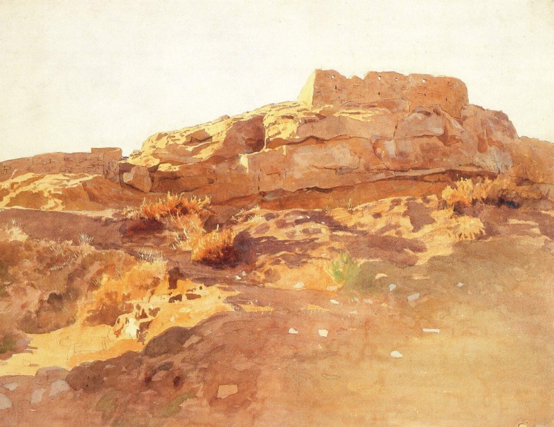 The painting "Reste des alttestamentlichen Jericho" from the artist Eugen Bracht as high-quality, hand-painted oil painting replication.