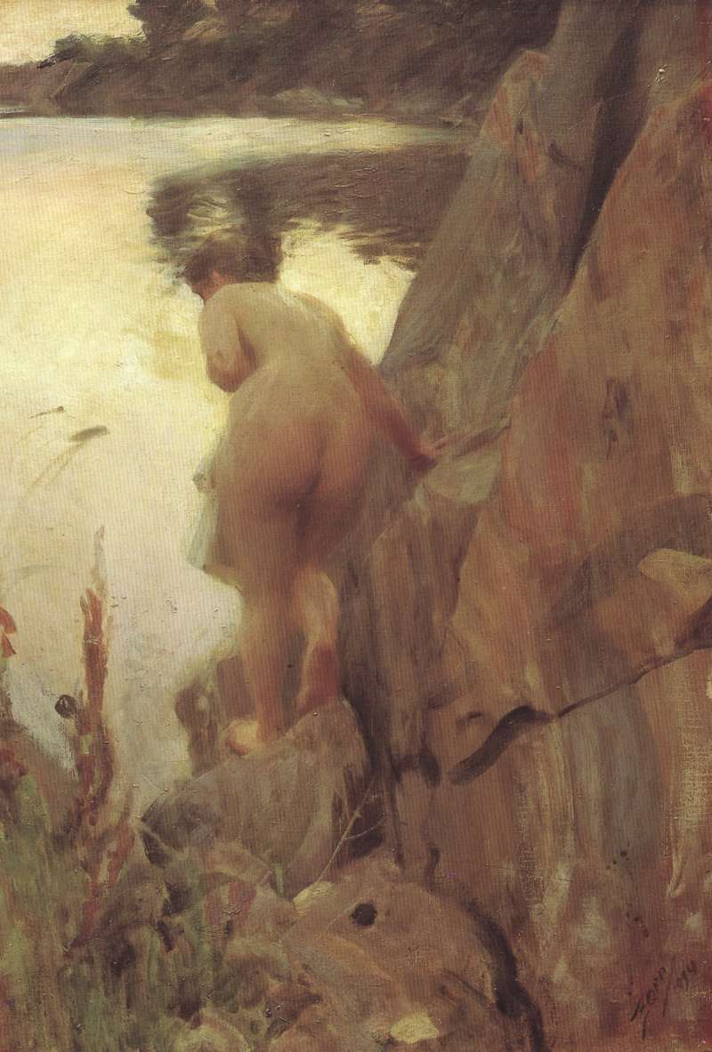 The painting "Sommerabend" from the artist Anders Zorn as high-quality, hand-painted oil painting replication.