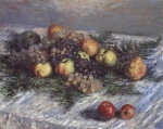 The painting "Stillleben mit Birnen und Trauben" from the artist Claude Monet as high-quality, hand-painted oil painting replication.