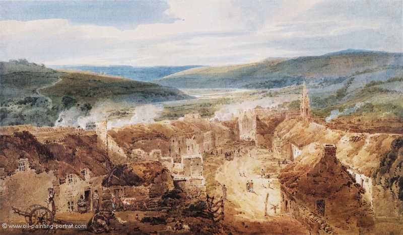 The painting "The Village of Jedburgh (Roxburghshire)" from the artist Thomas Girtin as high-quality, hand-painted oil painting replication.