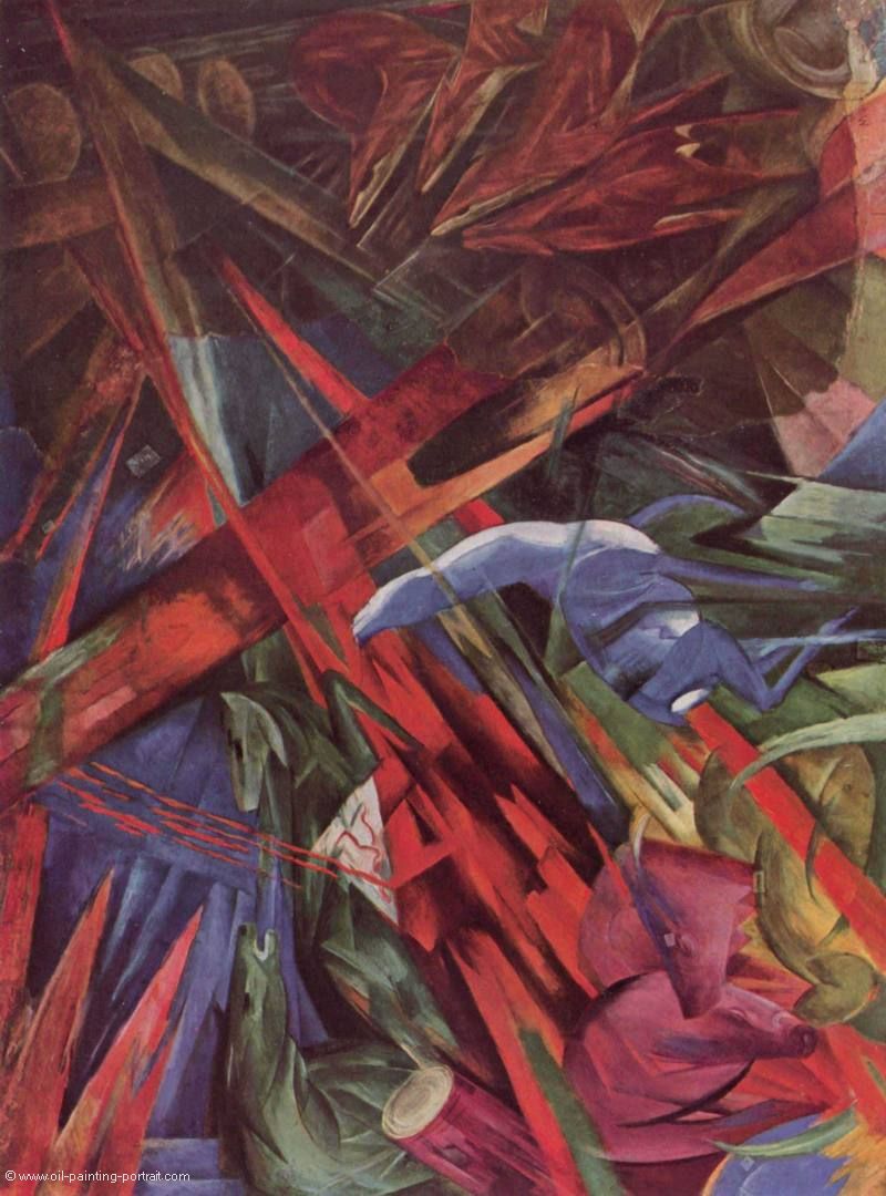 The painting "Tierschicksale" from the artist Franz Marc as high-quality, hand-painted oil painting replication.