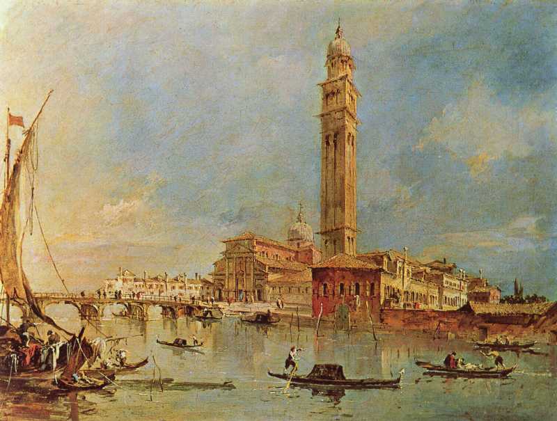 The painting "Vedute der Isola di San Pietro di Castello" from the artist Francesco Guardi as high-quality, hand-painted oil painting replication.