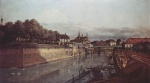 Bernardo Bellotto - paintings - Die Festungswerke in Dresden, Festungsgraben mit Brücke zwischen Wilschen Tor und Postmeilensäule