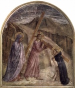 Fra Angelico's deeply religious early work is characterized by the clear simplicity of the picture structure and the picturesque subtlety of the figures. From 1447, he painted for the papal court and developed a special feeling for space and surface using new forms of the Renaissance style. Compared to his earlier works as the frescoes in the monastery of San Marco, his figures appear in a new monumentality and unity on later frescoes found in the Cappella Niccolina and in the cathedral of Orvieto. |