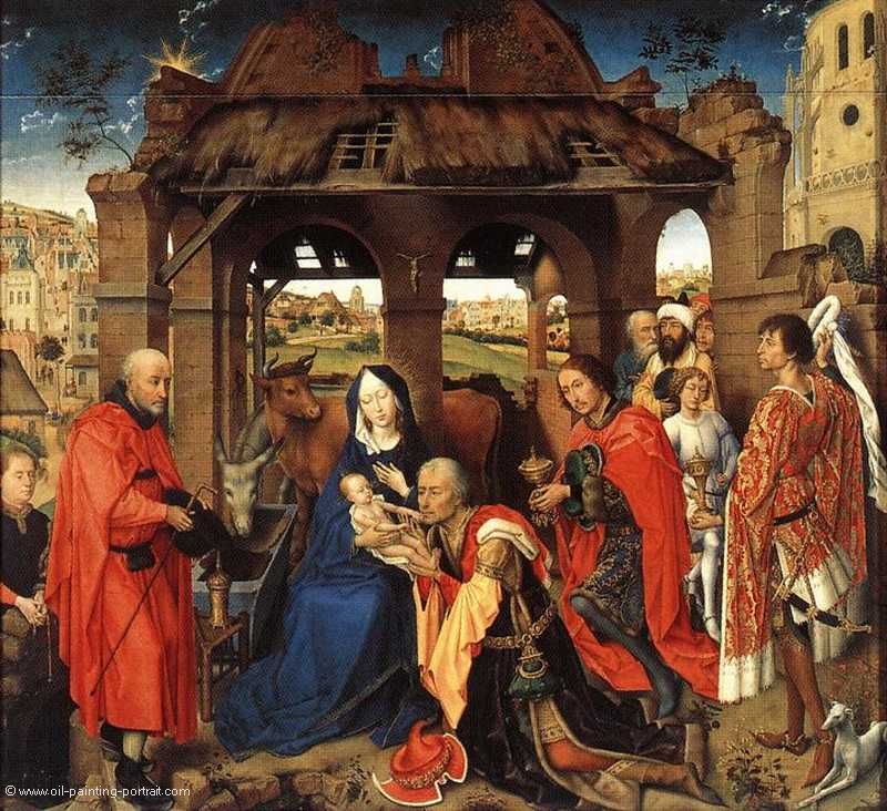 Le tableau "Adoration des Mages" de Rogier van der Weyden: tableau à l'huile réplique, peint à la main et de grande qualité.