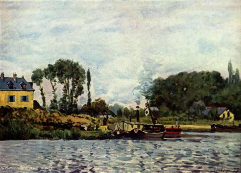 Le tableau "Bateaux à Bougival" de Alfred Sisley: tableau à l'huile réplique, peint à la main et de grande qualité.