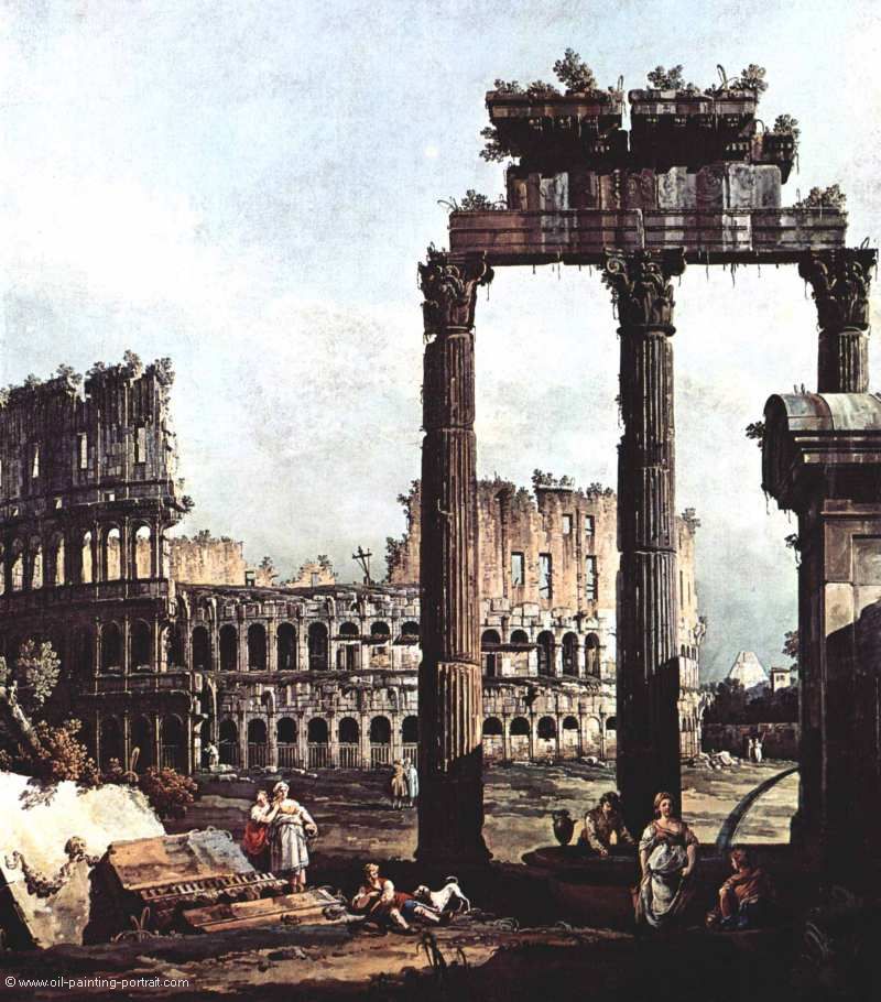 Le tableau "Le Colisée avec les ruines du temple de Vespasien" de Bernardo Bellotto: tableau à l'huile réplique, peint à la main et de grande qualité.