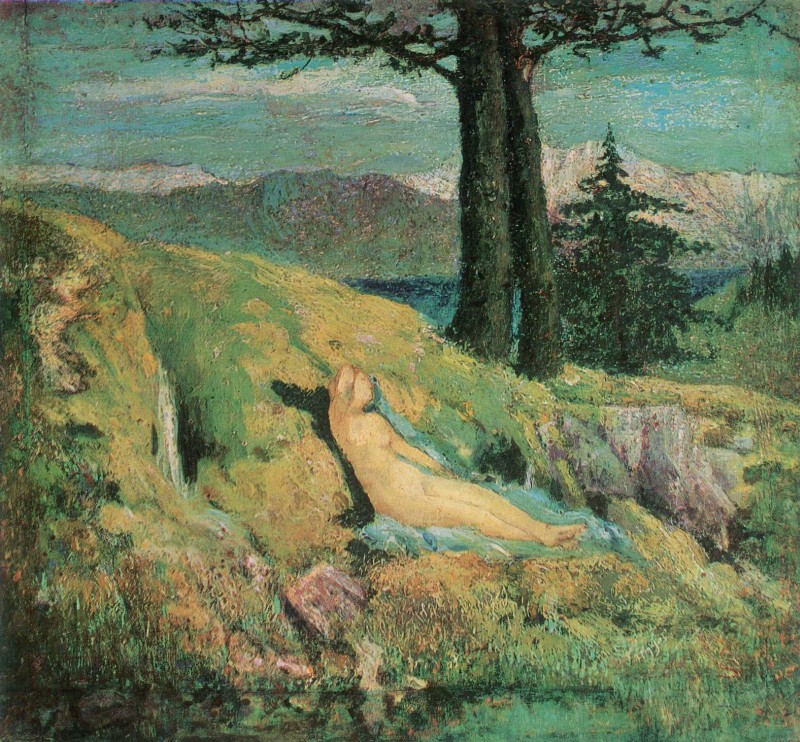 Le tableau "La source" de Giovanni Segantini: tableau à l'huile réplique, peint à la main et de grande qualité.