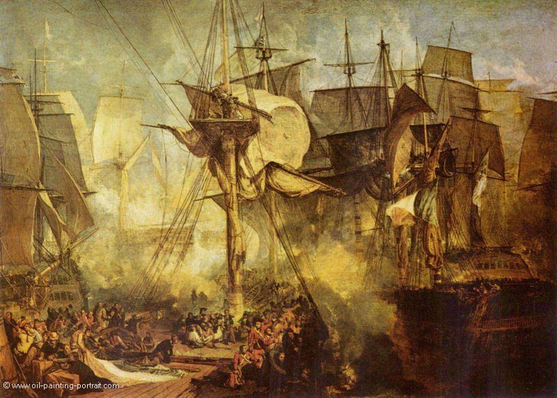 Le tableau "La bataille de Trafalgar" de Joseph Mallord William Turner: tableau à l'huile réplique, peint à la main et de grande qualité.