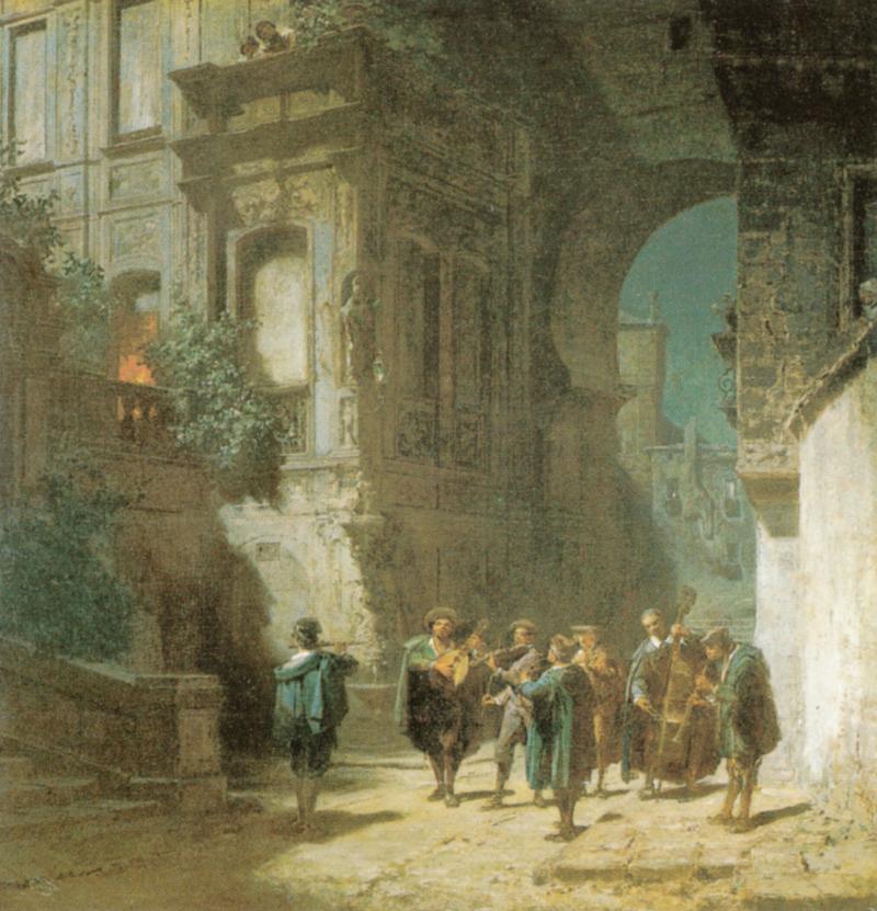 Le tableau "La Sérénade" de Carl Spitzweg: tableau à l'huile réplique, peint à la main et de grande qualité.