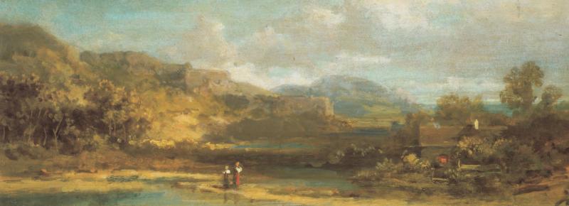 Le tableau "Paysage de montagne avec maison" de Carl Spitzweg: tableau à l'huile réplique, peint à la main et de grande qualité.