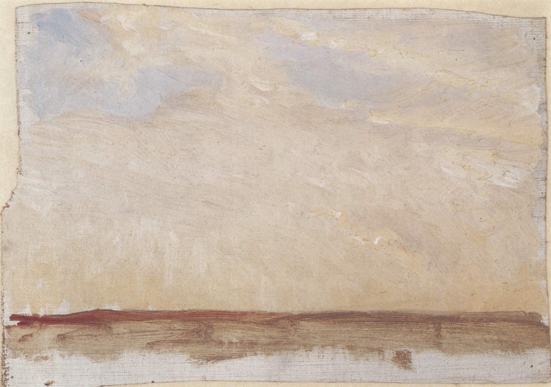 Ma demande concernant la technique du craquelé: "Paysage de lande avec un ciel bleu et ocre"