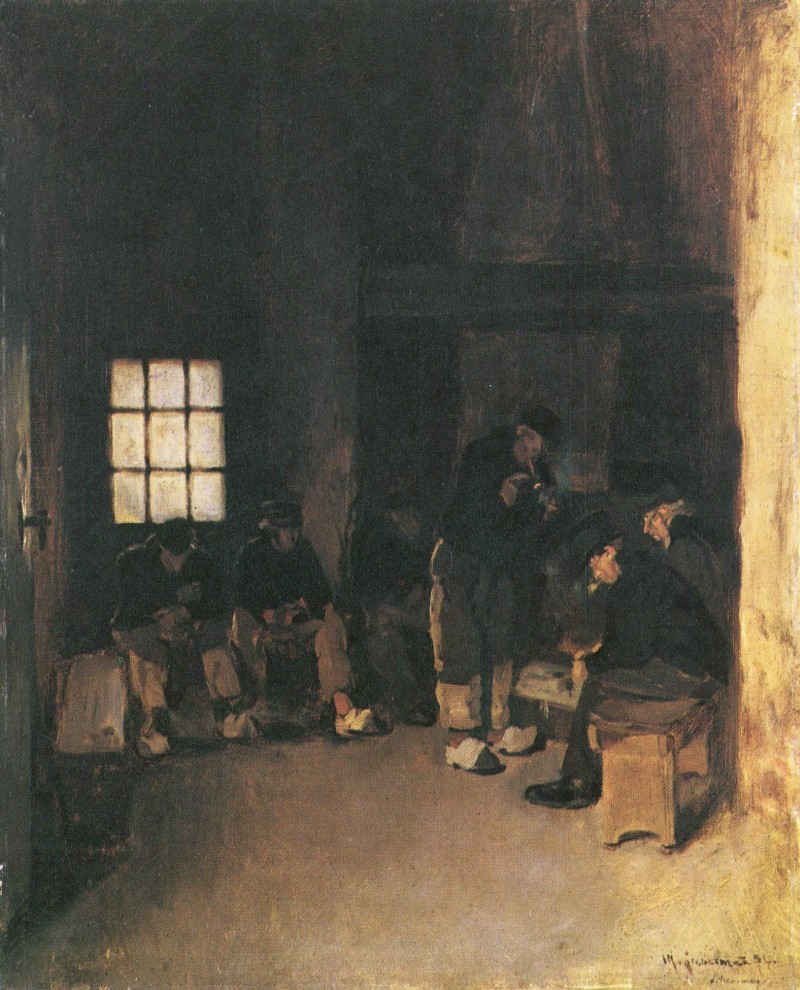 Le tableau "Salle de repos des aiguilleurs du port" de Max Liebermann: tableau à l'huile réplique, peint à la main et de grande qualité.