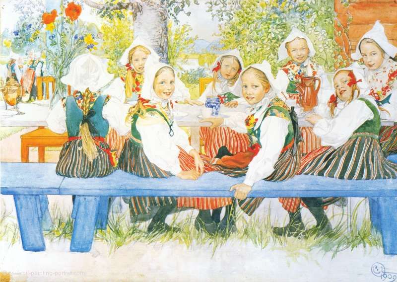 Le tableau "L'anniversaire de Kerstin" de Carl Larsson: tableau à l'huile réplique, peint à la main et de grande qualité.