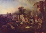 Le tableau "Le bivouac" de Jean Antoine Watteau: tableau à l'huile réplique, peint à la main et de grande qualité.