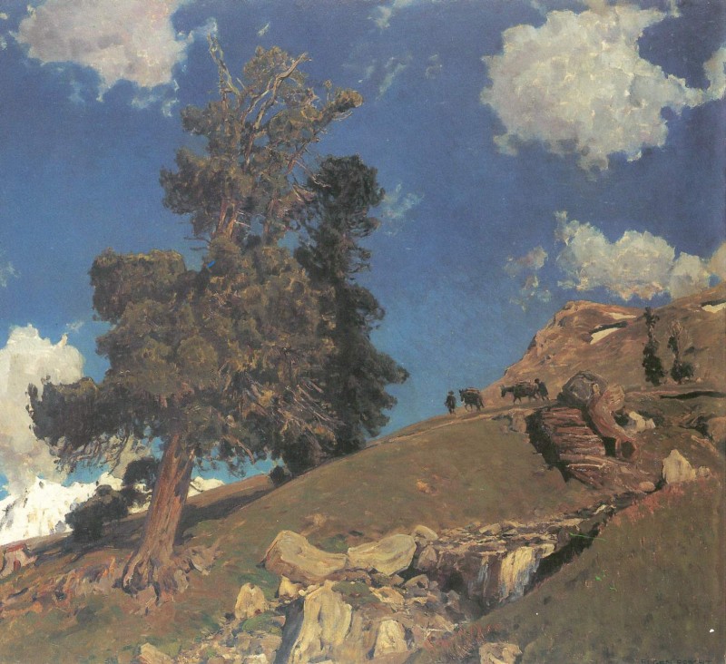 Le tableau "Mont Rosa et Arven" de Eugen Bracht: tableau à l'huile réplique, peint à la main et de grande qualité.