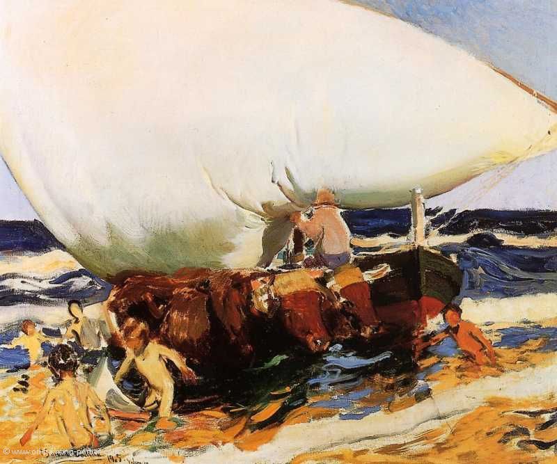Le tableau "Sur la plage de Valence" de Joaquin Sorolla y Bastida: tableau à l'huile réplique, peint à la main et de grande qualité.