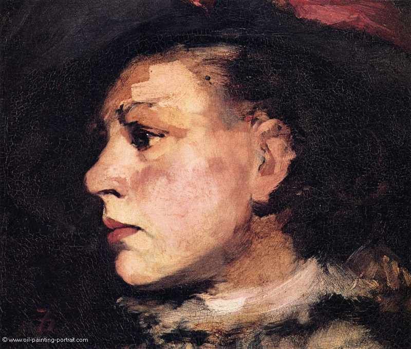 Le tableau "Profil d´une jeune fille avec chapeau" de Frank Duveneck: tableau à l'huile réplique, peint à la main et de grande qualité.