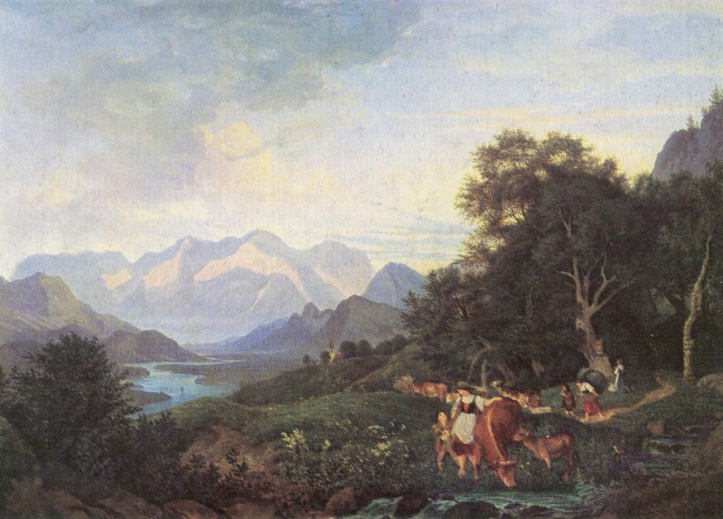 Le tableau "Paysage autour de Salzbourg" de Adrian Ludwig Richter: tableau à l'huile réplique, peint à la main et de grande qualité.
